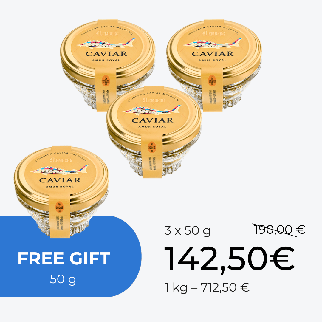 Lemberg ponuja širok izbor pristnega jesetrovega kaviarja. Svetovno znani kaviar iz beluge ostaja ena najbolj priljubljenih izbir. Poznavalci ga cenijo zaradi izvrstnega oreškastega okusa in velikosti zrn.