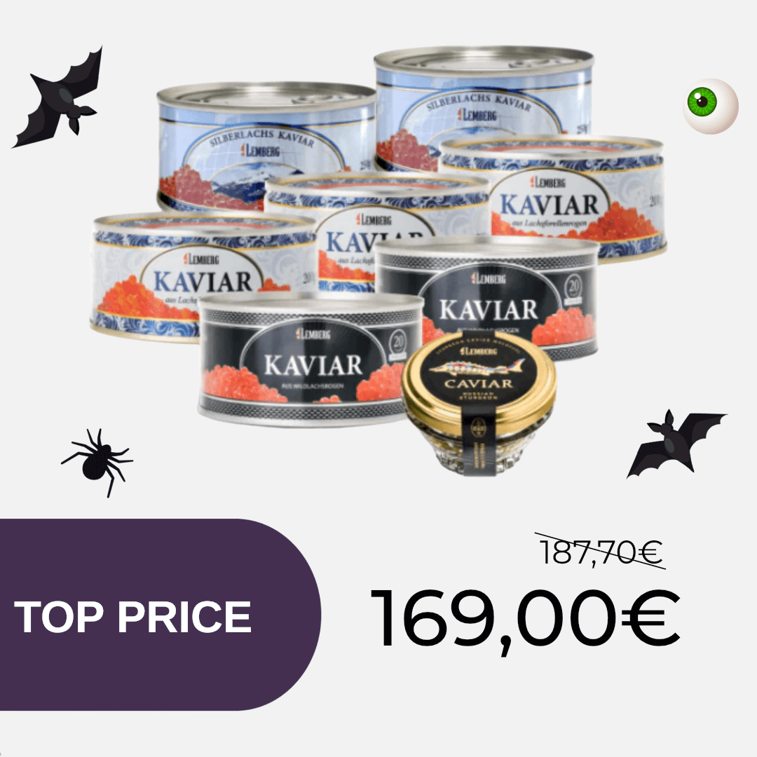 V naši spletni trgovini v Španiji ponujamo širok izbor kaviarja – približno petnajst različnih vrst, ki zadovoljijo tudi najzahtevnejše okuse. Ne glede na to, ali imate raje prefinjen črni jesetrov kaviar ali okusen rdeči lososov kaviar, Lemberg jamči za kakovost in svežino ob vsaki dostavi.